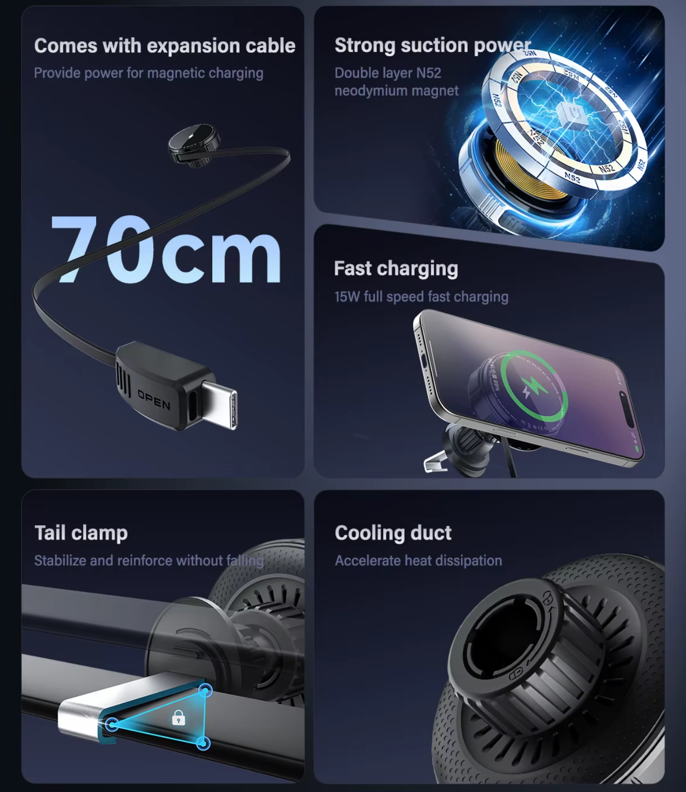- Strong N52 magnets: Secure your phone instantly with high‑strength magnetic adsorption. Compatible with magnetic phones and cases.